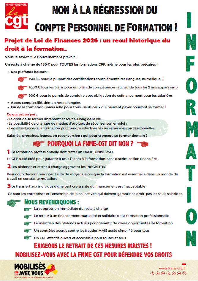 INFORMATION FNME-CGT : NON À LA RÉGRESSION DU COMPTE PERSONNEL DE FROMATION !