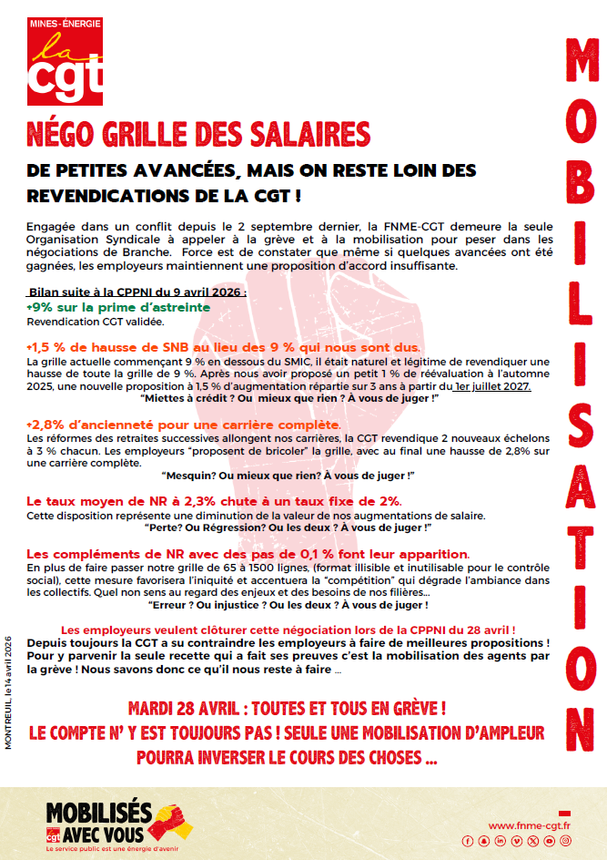 FNME CGT : NÉGO GRILLE DES SALAIRES, DES PETITES AVANCÉES, MAIS ON RESTE LOIN DES REVENDICATIONS DE LA CGT !