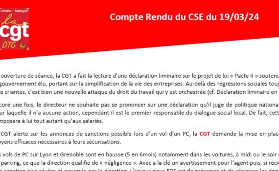 GEG CONDAMNÉ EN CASSATION ! NOTE RELATIVE À LA COMPENSATION DES HORAIRES DECALÉS En septembre 2020, la Direction du Groupe mettait en place une nouvelle note d’organisation des horaires pour travailler en dehors de l’horaire de référence à GEG. Cette note, passée en CSE sans négociation et imposée malgré l’avis […]